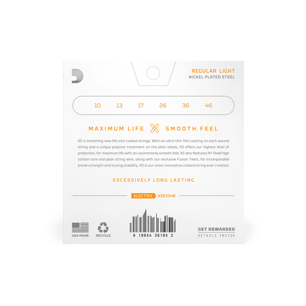 D’Addario 10-46 XS Coated Nickel Electric Guitar Strings – Regular Light (.010–.046) (XSE1046)
