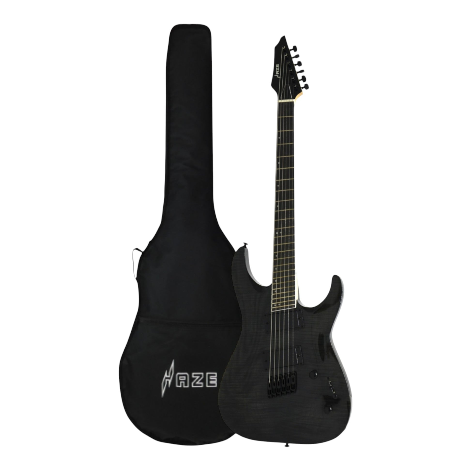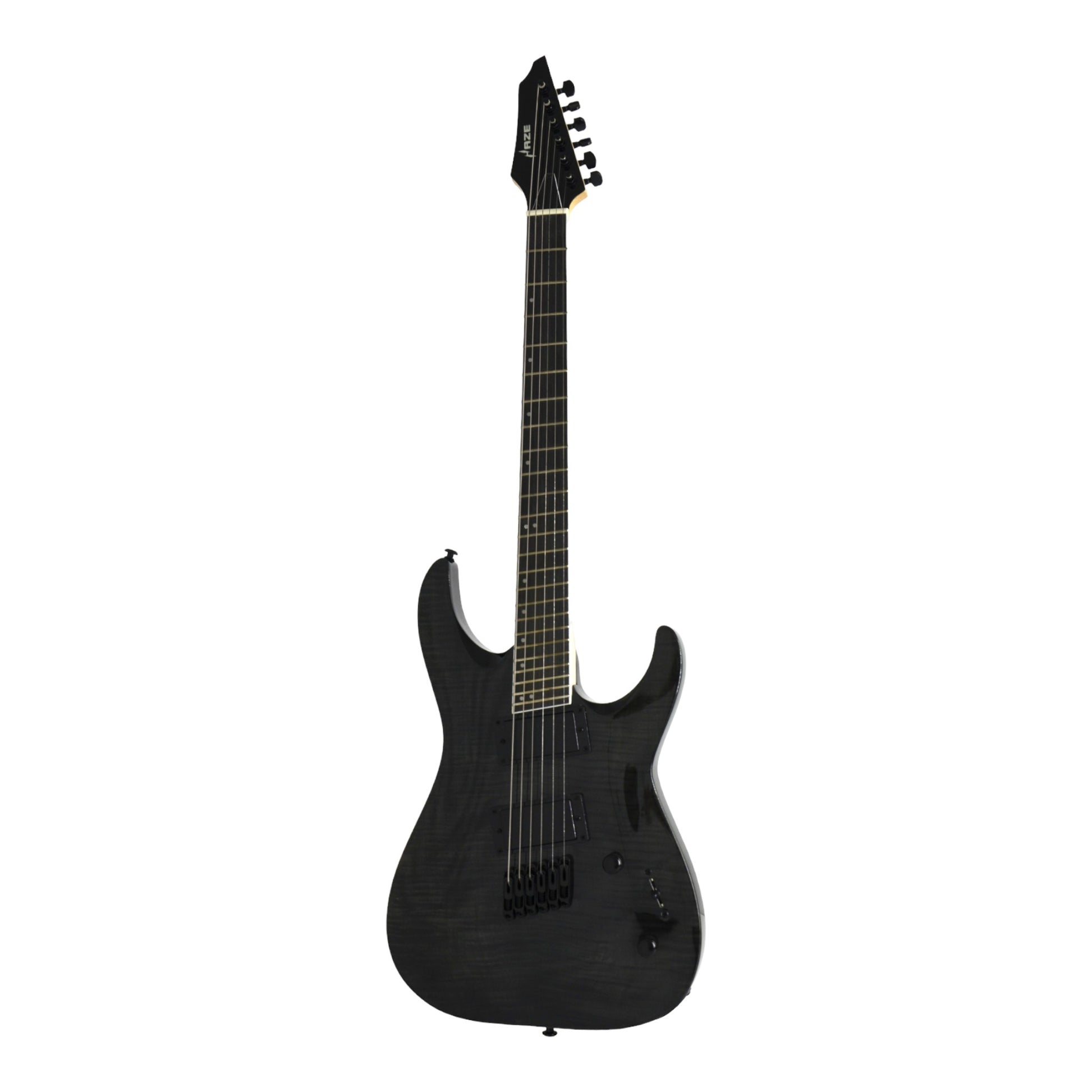 - Model: Haze-6FF TBK (6-String, Fanned-Fret, Transparent Black)