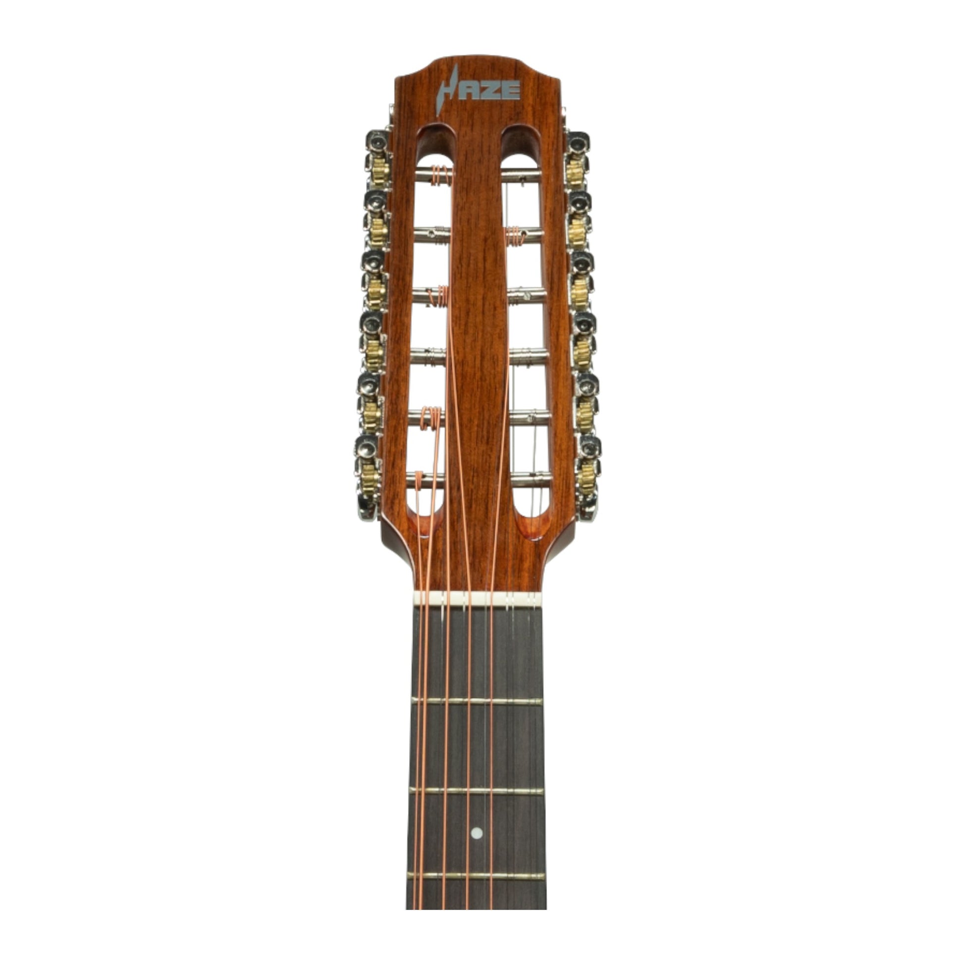 The 36" Haze 12-String Acoustic Guitar with a quality mahogany top and body is a beautifully crafted instrument designed to deliver rich, resonant tones and a unique playing experience. The mahogany top ensures a warm, well-defined sound, providing excellent projection and clarity.