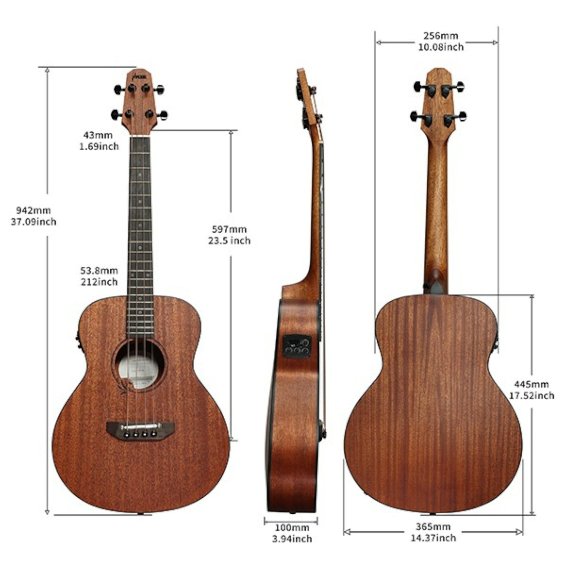 - Condensed Scale Length: Despite its small size, this bass guitar delivers natural-sounding bass notes, thanks to its condensed 23-1/2-inch scale length. This scale length is about 10 inches shorter than a standard bass guitar, with a total length of 970mm. Making it easier to play and handle.