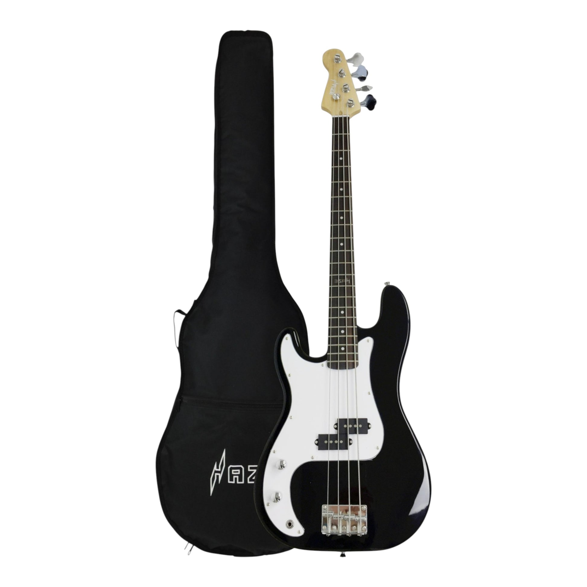 Left-Handed Haze HSPB1901BKBHL 4-String Electric Bass Guitar + Free Bag, Tuner, 3 Picks