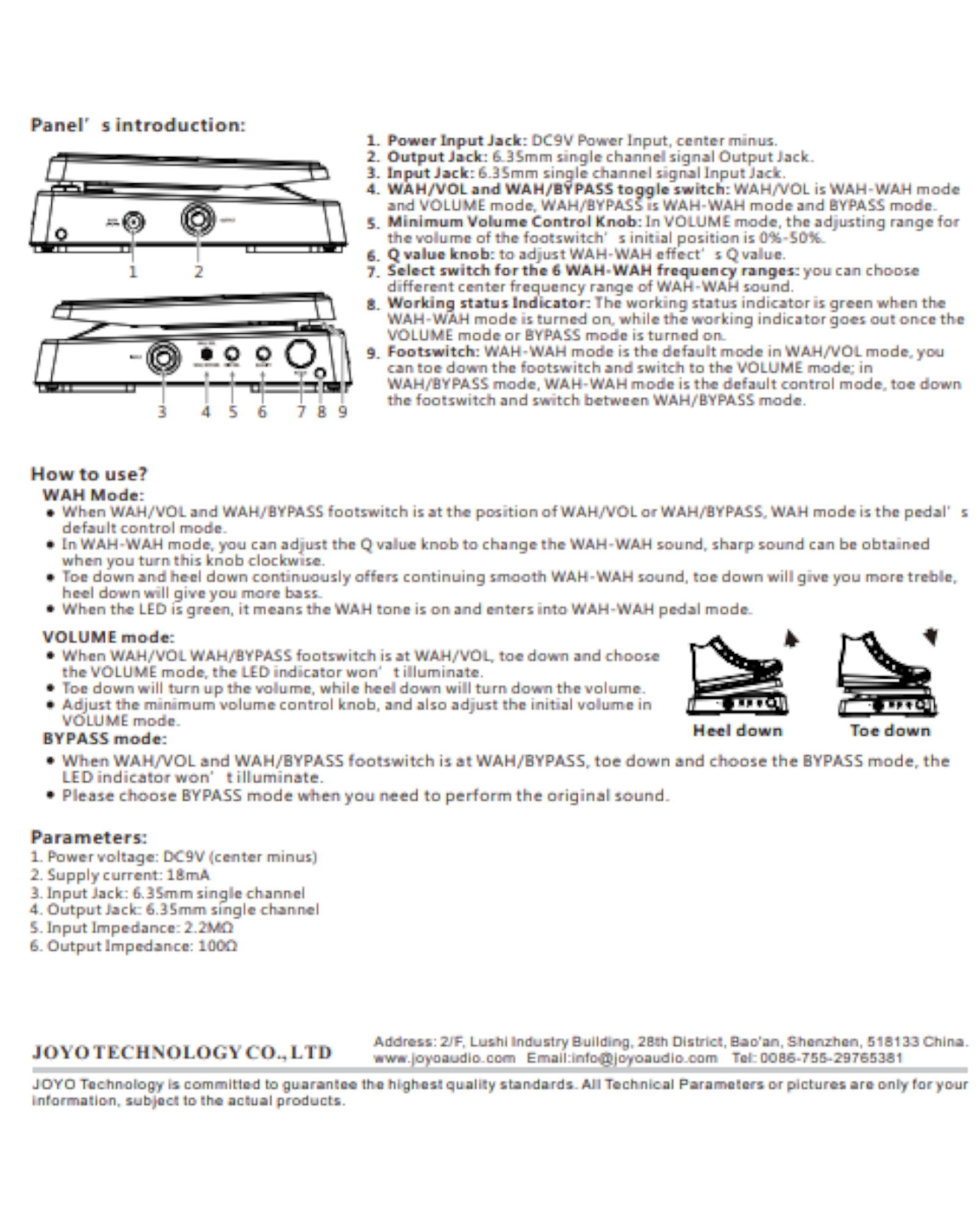 True Bypass (WAH-WAH Mode Only): Maintains signal integrity when the WAH-WAH function is not in use.