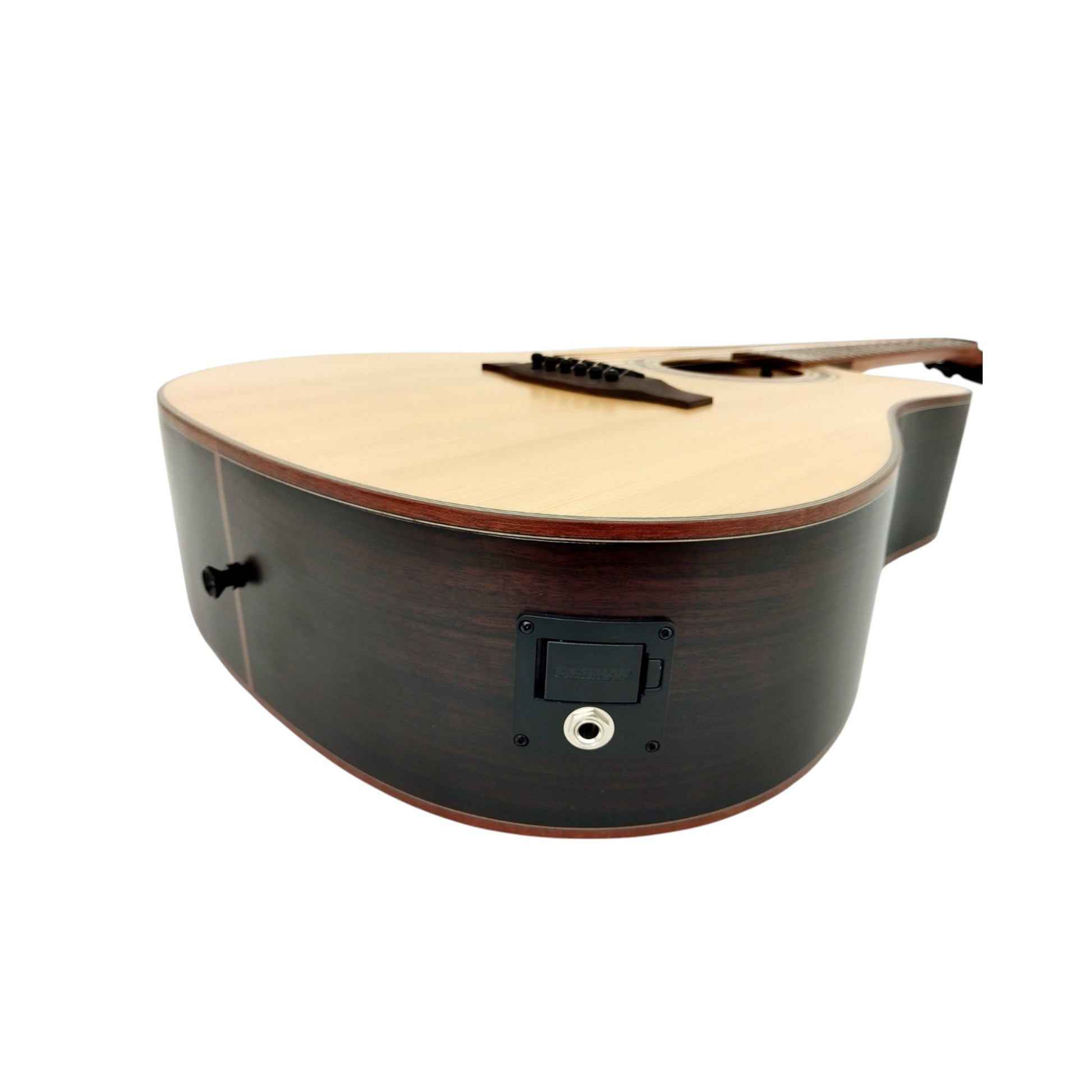 Equipped with the MINGS FISHMAN OEM-ISY-301 preamp, this guitar offers versatility for both acoustic and amplified performances. The black tuning machines provide precise tuning stability, ensuring your playing remains in perfect harmony.