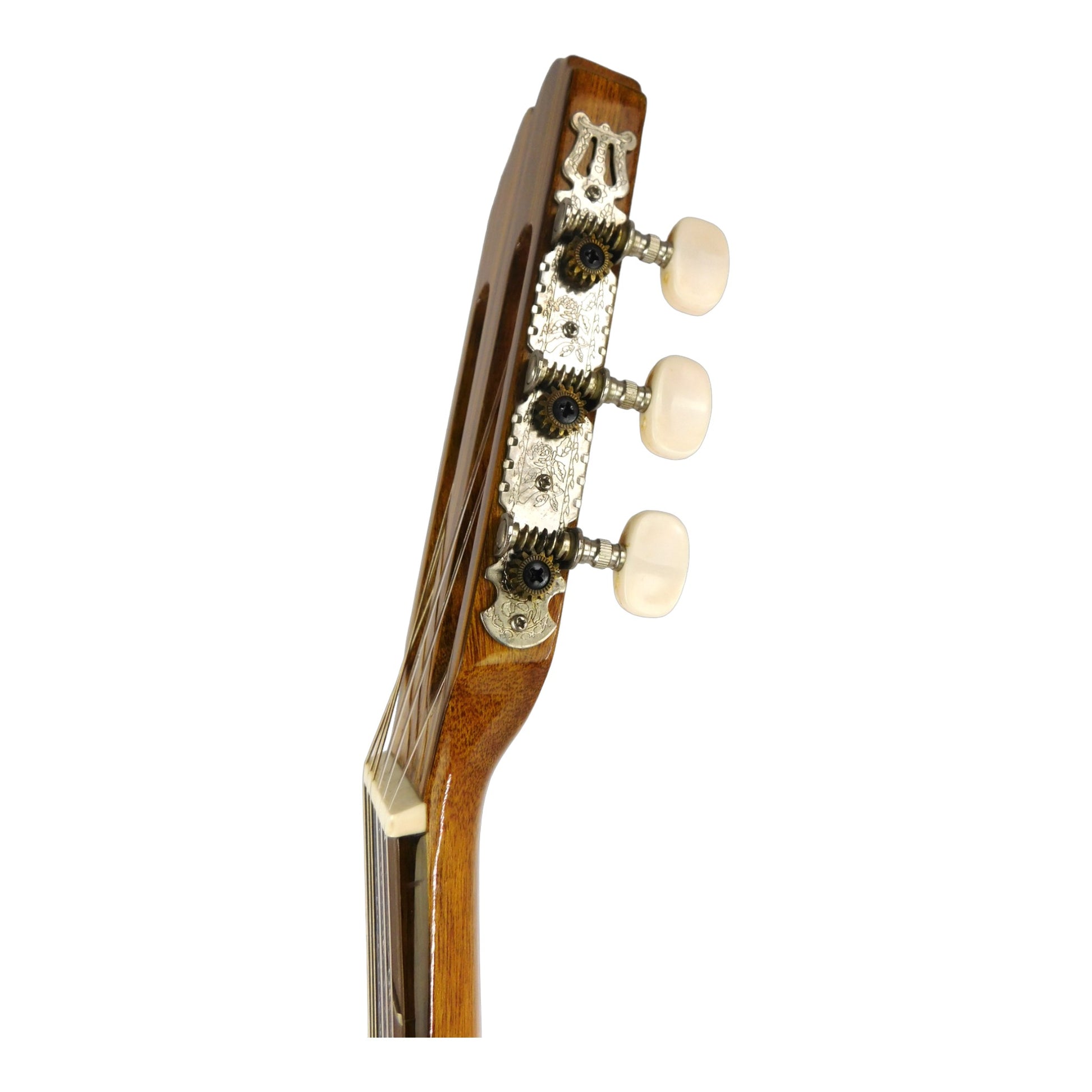 - Tuners: Vintage open nickel plate tuners with antique white keys, ensuring smooth tuning.