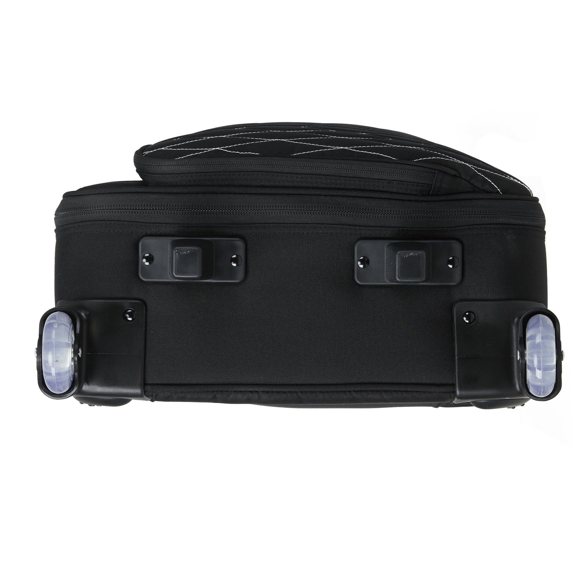 RIVETED BACK HANDLE & SIDE HANDLES : The back handle allows you to hold the case upright to avoid inconveniencing other people by carrying it with the side handle.
