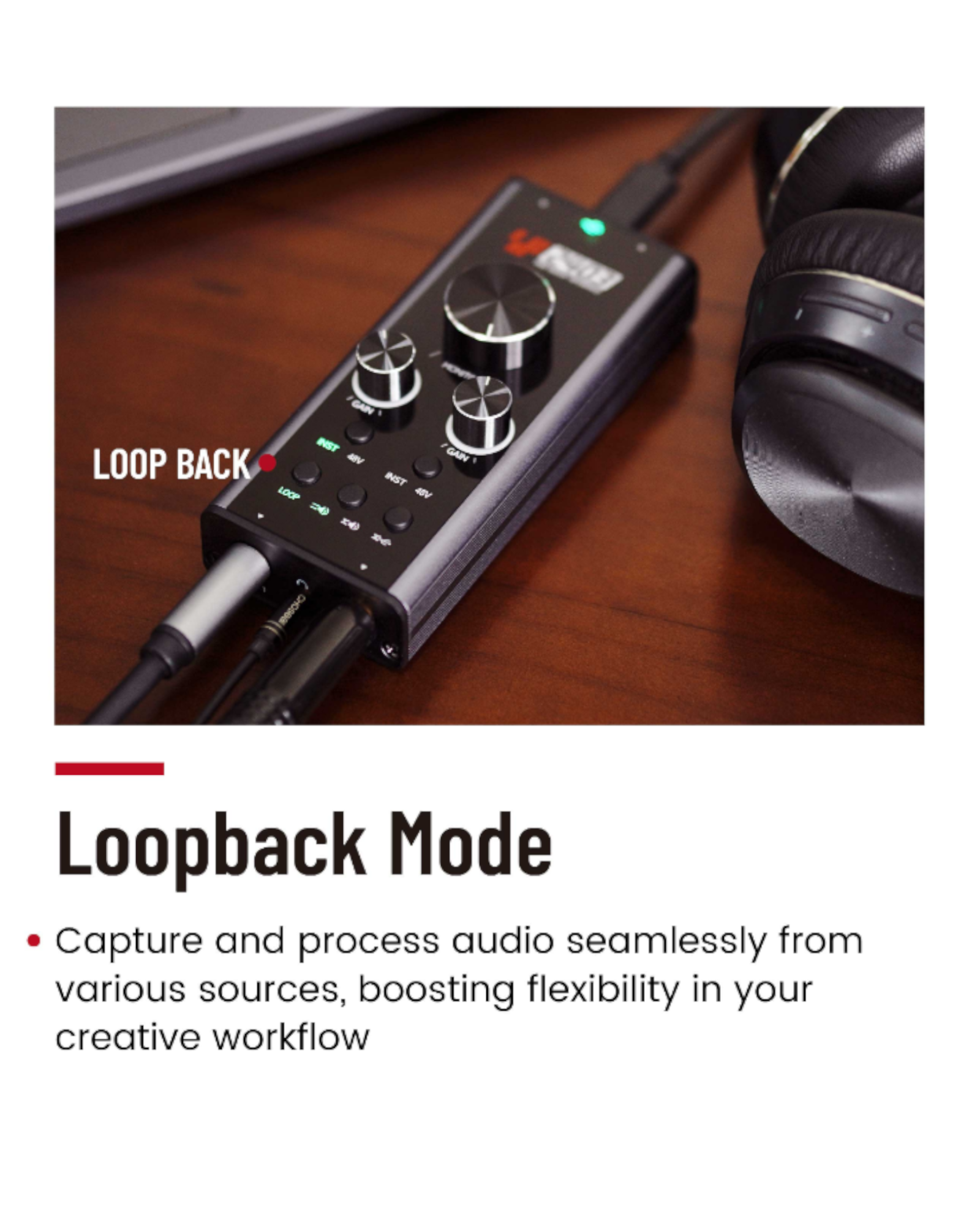 Loop Mode: Ideal for seamless multi-source audio processing, with a loop function for internal recording.